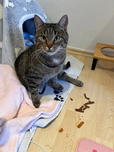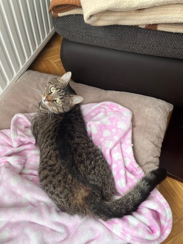 Sie liebt es zu schmusen und genießt meine Anwesenheit. Sie ist eine super feinfühlige Katze, die jede Emotion wahrnimmt. Nola ist ein absoluter Goldschatz! Sie ist super fixiert auf mich und traut niemandem anderen. Mein Partner darf sie mittlerweile auch anfassen, muss aber sehr genau darauf achten, wie er sich ihr nähert.